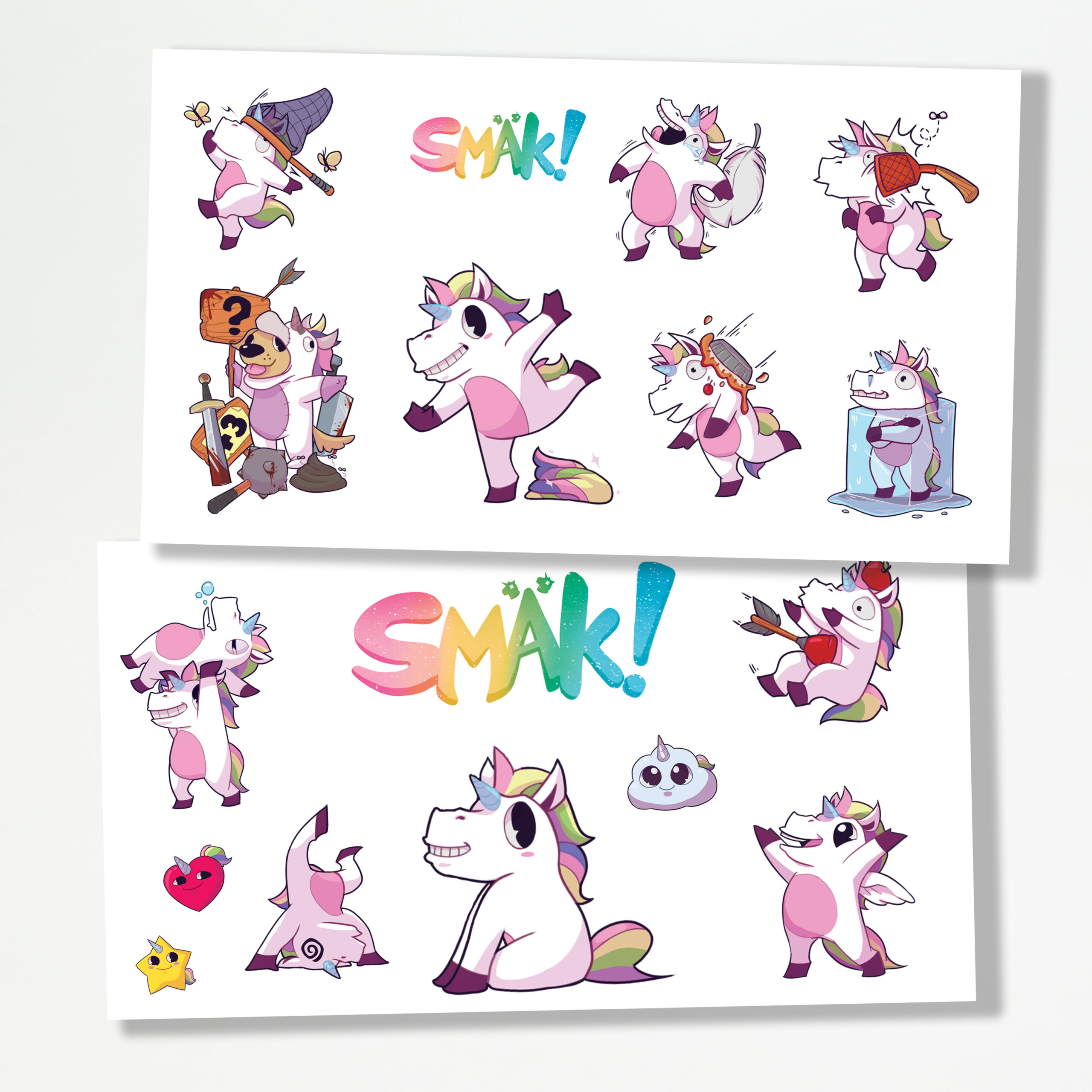 1 Sticker-Sheet voll mit familienfreundlichen Einhornstickern. 21cm x 23 cm gross.
